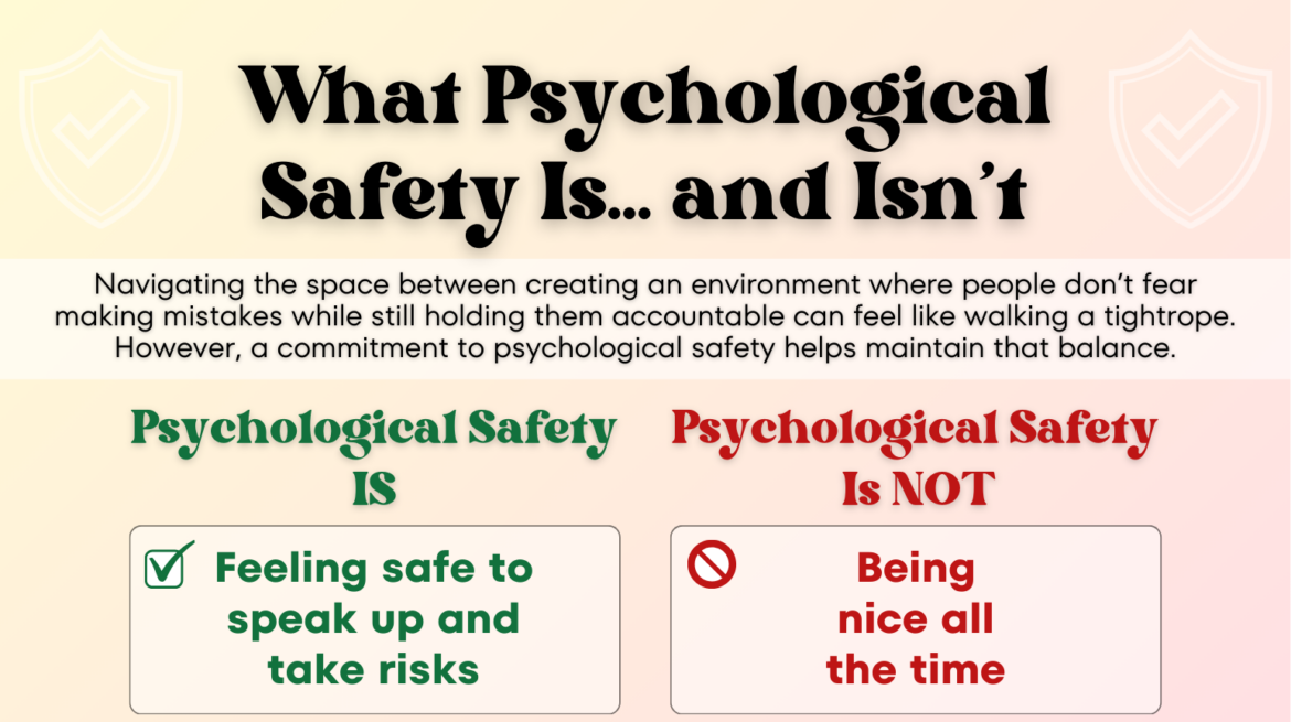 Navigating the space between creating an environment where people don’t fear making mistakes while still holding them accountable can feel like walking a tightrope. However, a commitment to psychological safety helps maintain that balance.